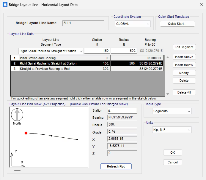 Las líneas de trazado de los puentes ahora pueden incluir una curva con espirales asimétricas (clotoides) o segmentos de espiral individuales.